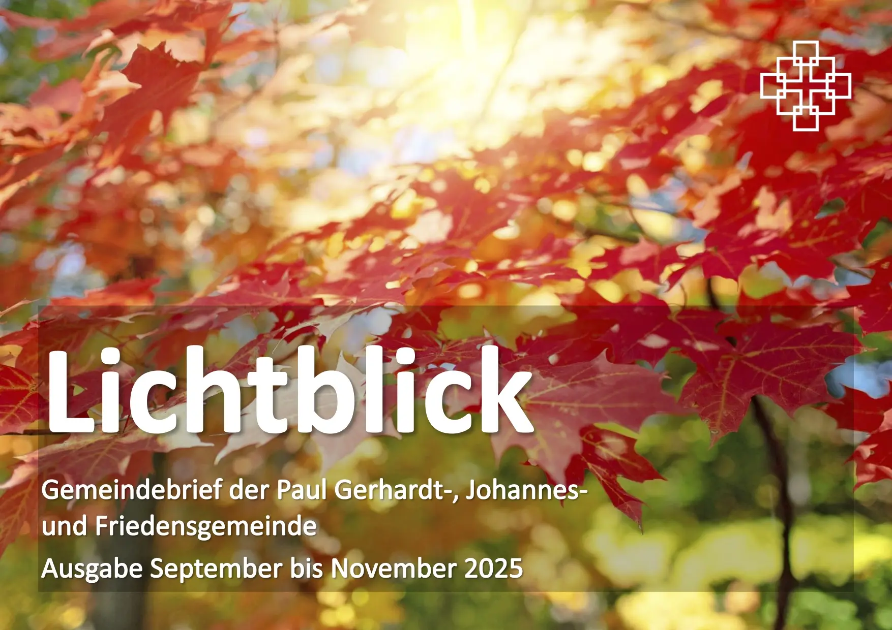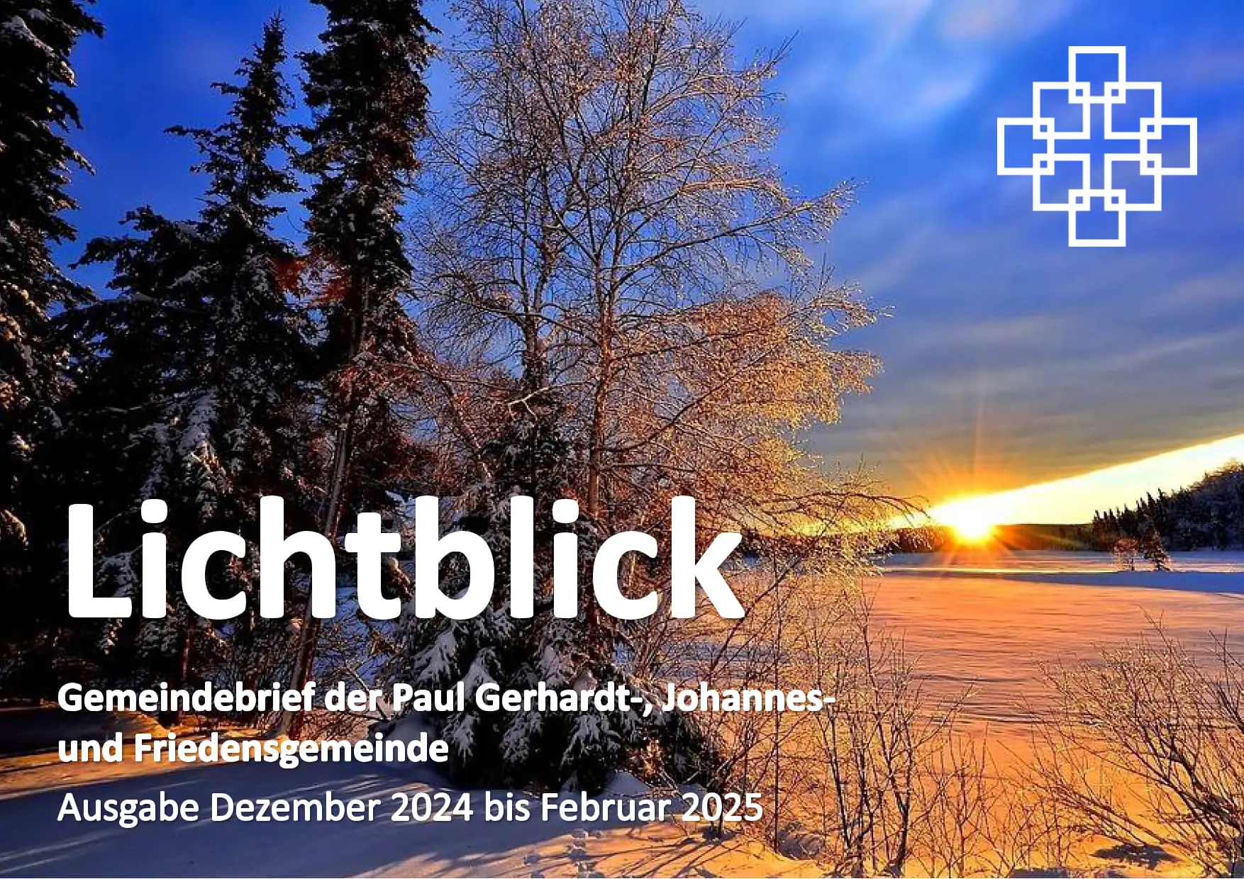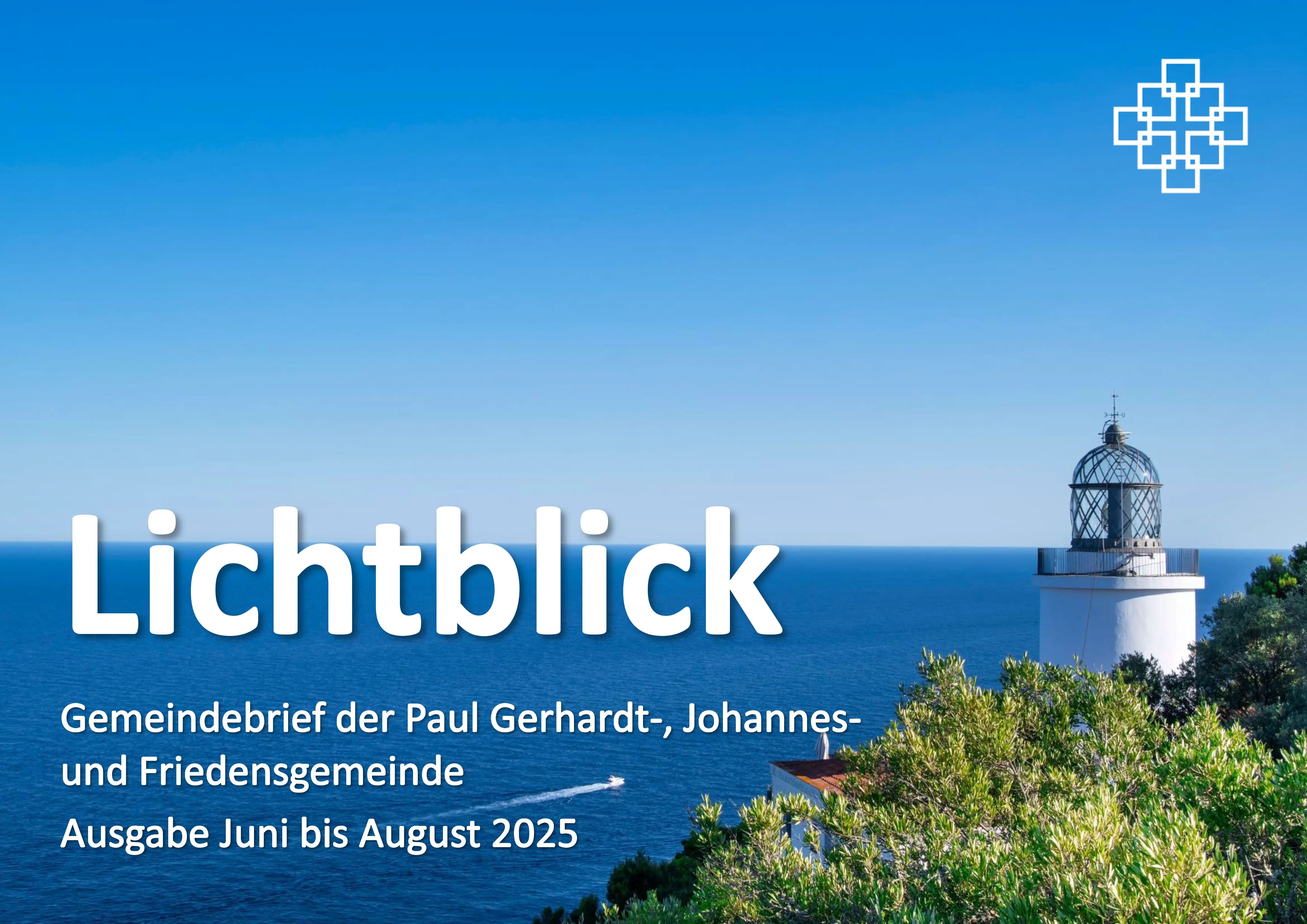 Der Gemeinde-brief Lichtblick ist der Nachfolger von Unsere Seiten. Die Gemeindebriefe der Johannesgemeinde, der Paul-Gerhardt-Gemeinde und der Friedensgemeinde sind nun eins. Drei Redaktionen haben sich zusammengefunden und präsentieren Ihnen nun den „Lichtblick“, der Ihnen viel Erhellendes aus den Nachbargemeinden und dem Nachbarschaftsraum zeigen will und gleichzeitig den Blick auf den lenken will, der das Licht der Welt ist, Jesus Christus.