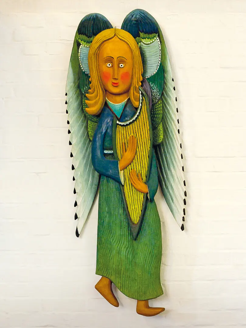 Der Harfe spielende Engel unter der Empore wurde von dem polnischen Bildhauer Eugeniusz Zegadło (*1943) in Krzyszka bei Kielce geschaffen. Der Künstler entstammt einer Schnitzer familie mit langer Tradition.